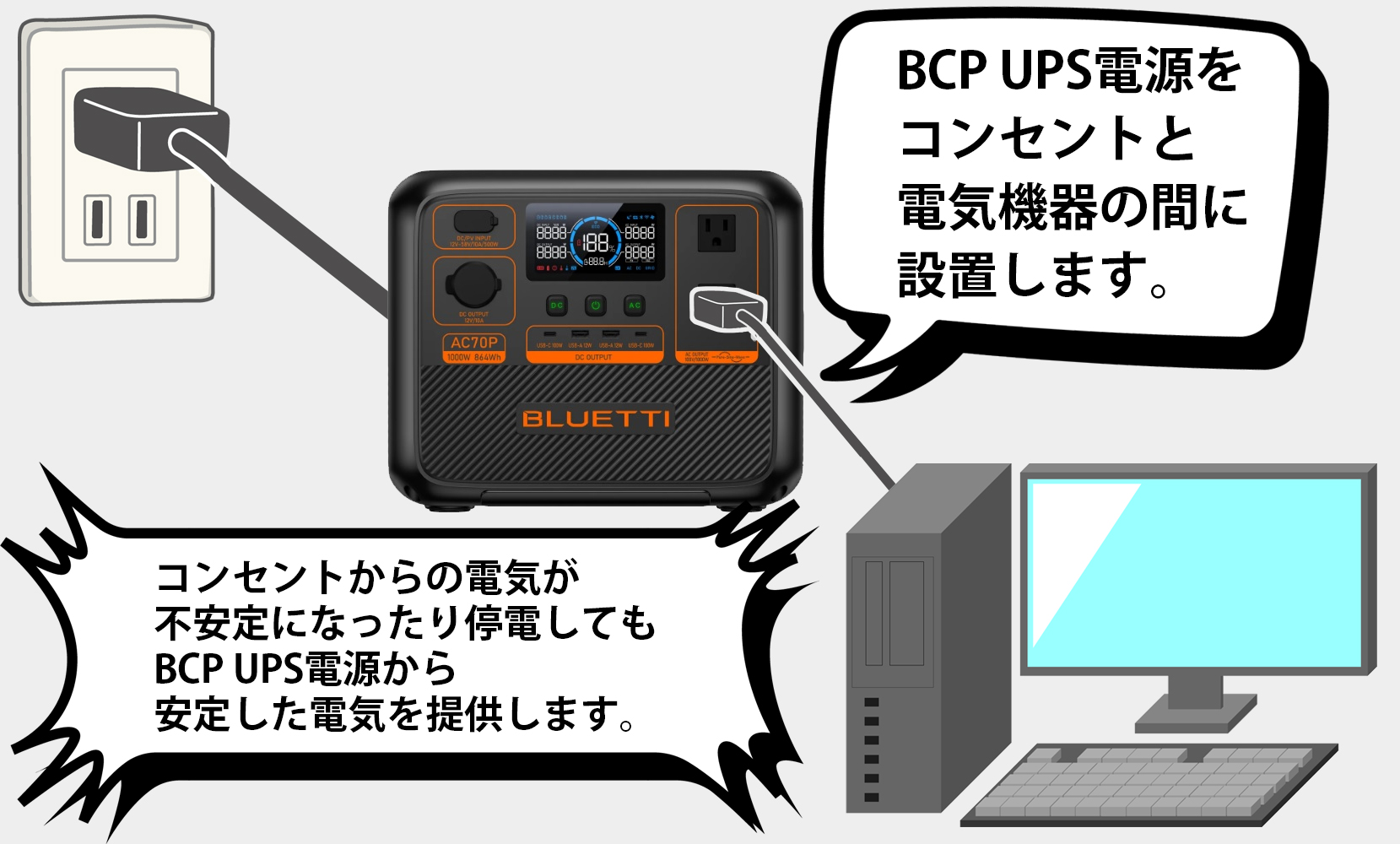 UPS機能付きポータブル電源:AC70P